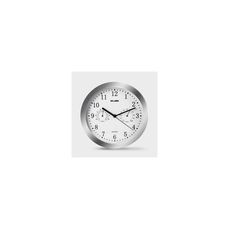 RELOJ DE PARED CON TERMOMETRO E HIGROMETRO PLATEADO